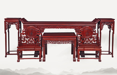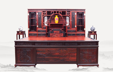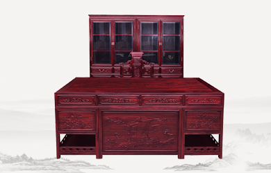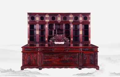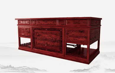 四柱滿雕山水寫字臺