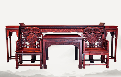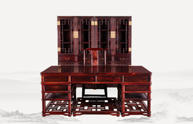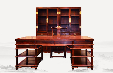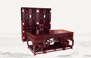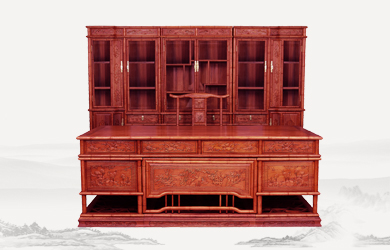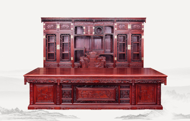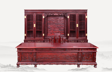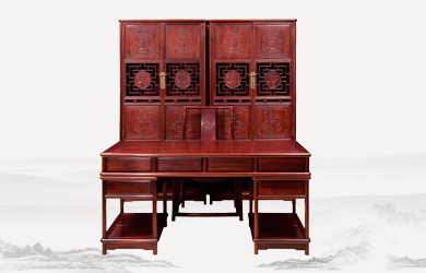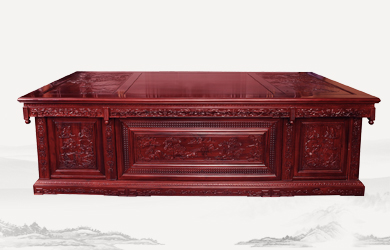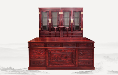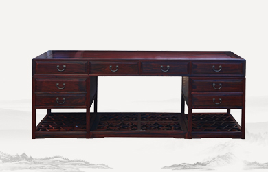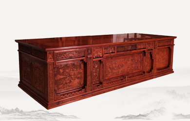 四垂花滿雕雙層辦公桌