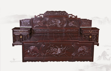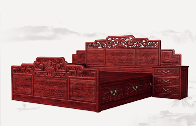 檀雕吉祥大床