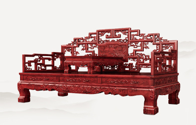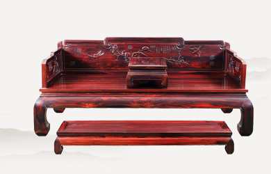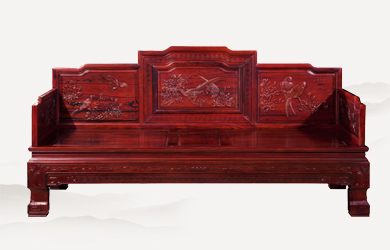 檀雕花鳥三屏風(fēng)羅漢床