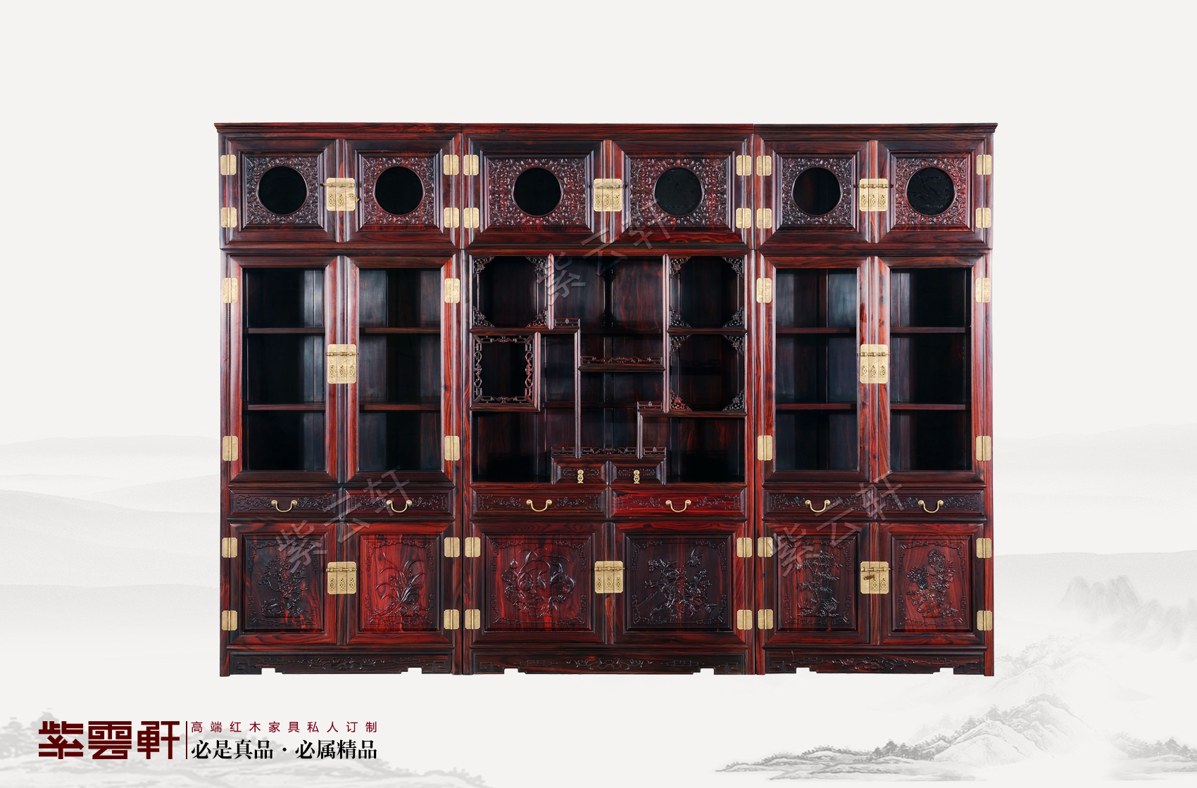 回紋錦地四君子書柜