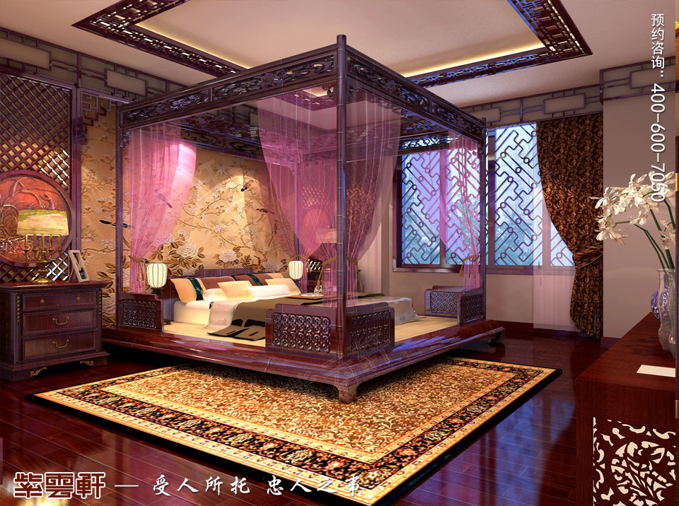 現(xiàn)代中式設(shè)計臥室,于此間能感受現(xiàn)代與復(fù)古結(jié)合浪漫,溫潤與吉祥并存的架子床帶來無限愜意,隨著蘭花的清香,漸入夢鄉(xiāng)……